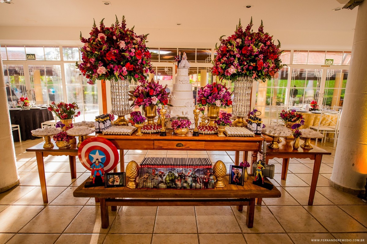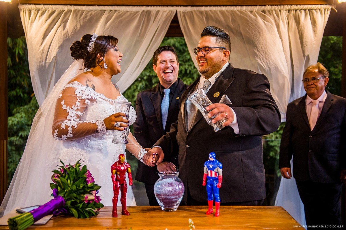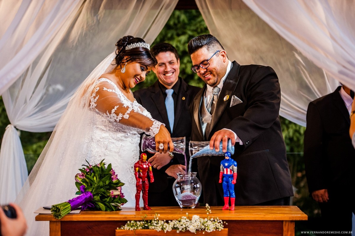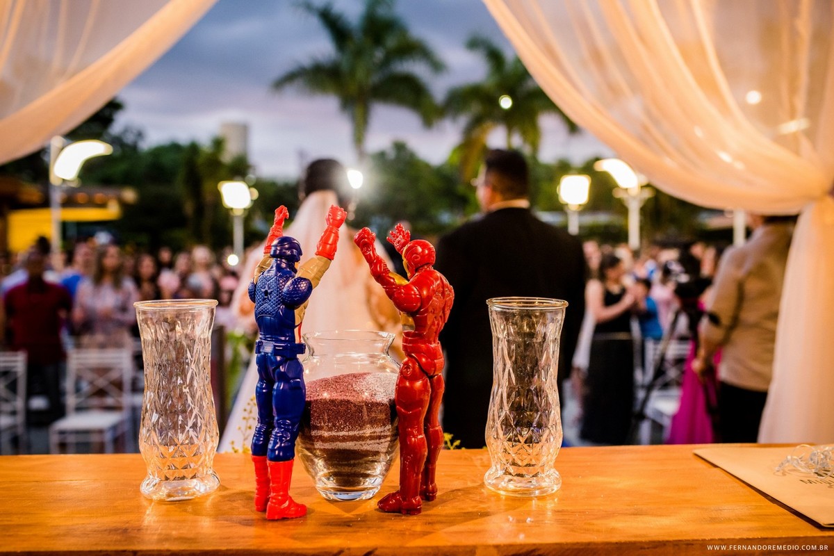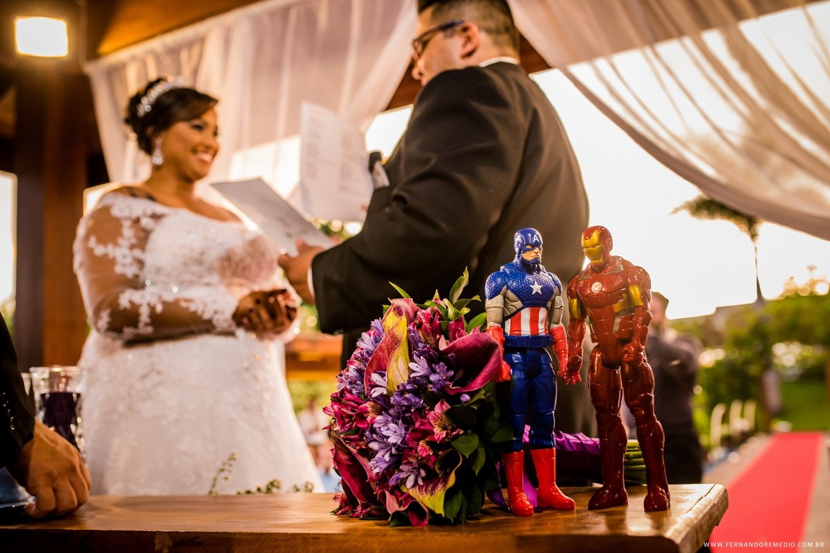 Cinéfilos assumidos Daiana e Bruno buscavam algo diferente em seu casamento, e decidiram colocar um pouco de personalidade... Foi assim que esse casamento tomou a forma de um evento que parecia muito os temas da Marvel... Confere ai como foi esse lindo dia..