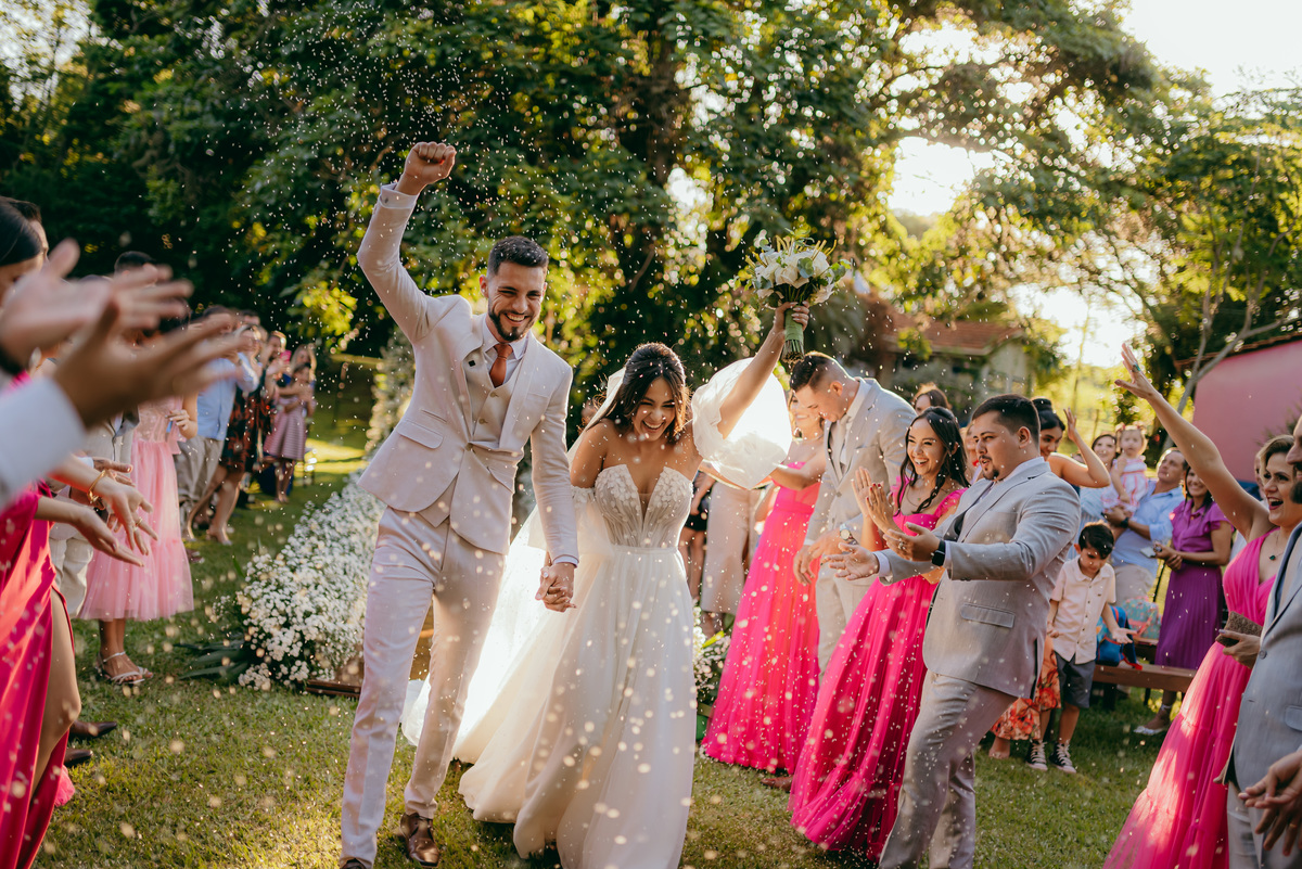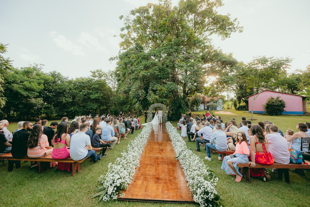 Um dia perfeito nasceu no Sítio Quero Quero, iluminando com suavidade cada detalhe de um dos momentos mais especiais da vida de um casal apaixonado. O cenário campestre, cercado de natureza, recebeu familiares e amigos para celebrar um casamento inesquecível.