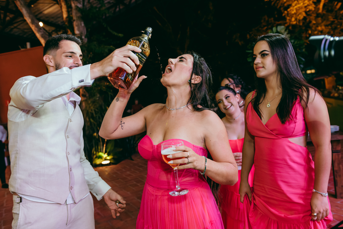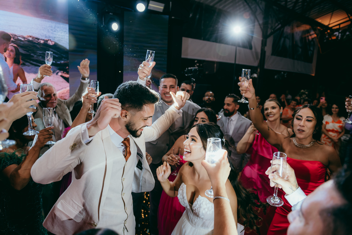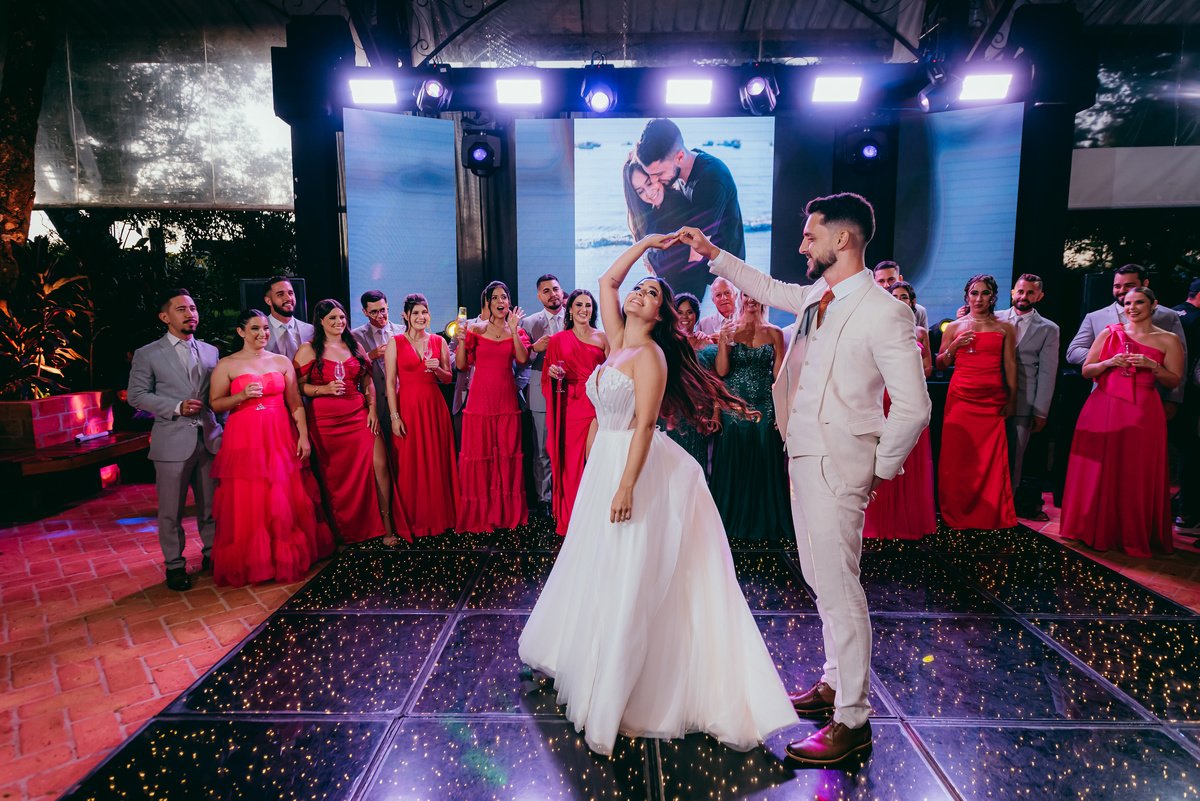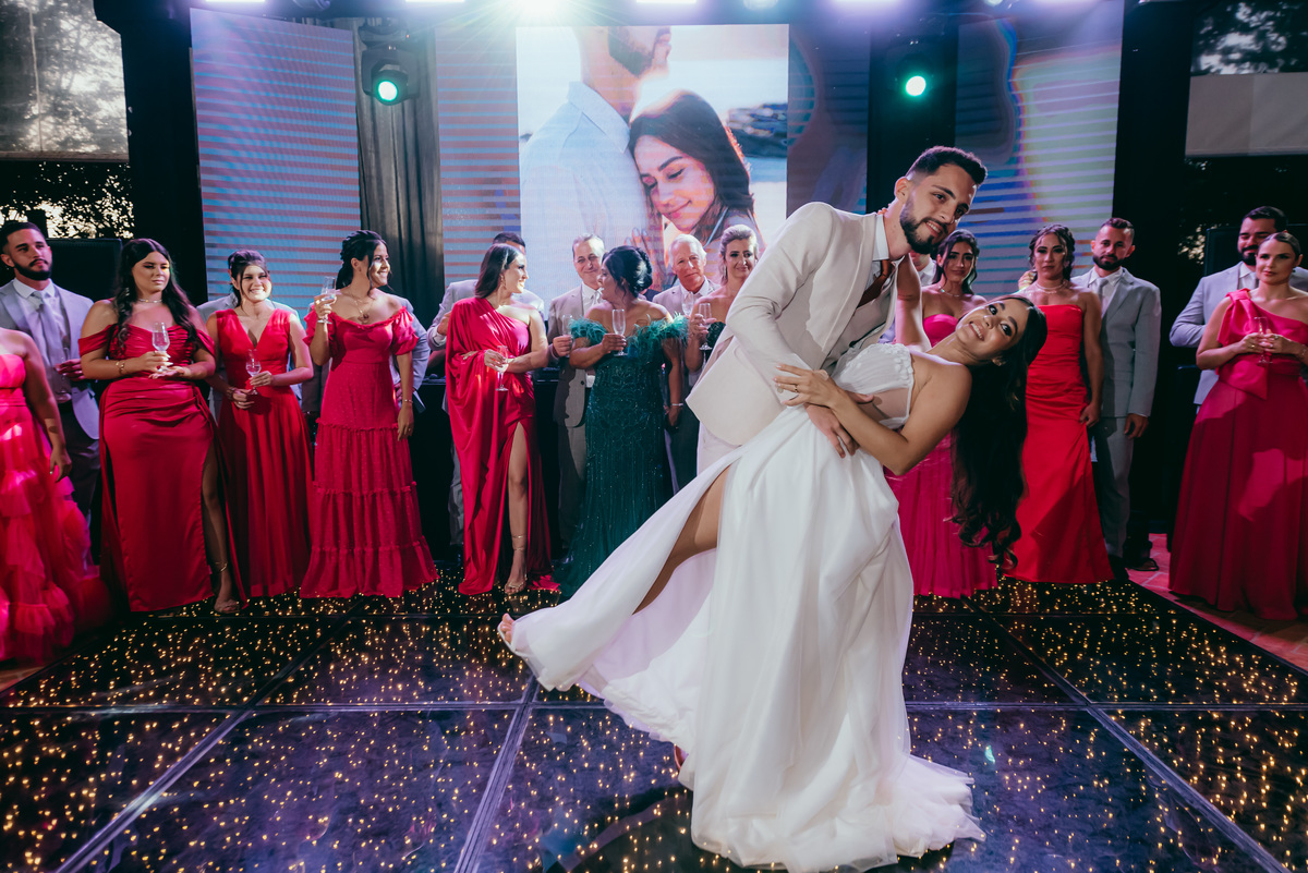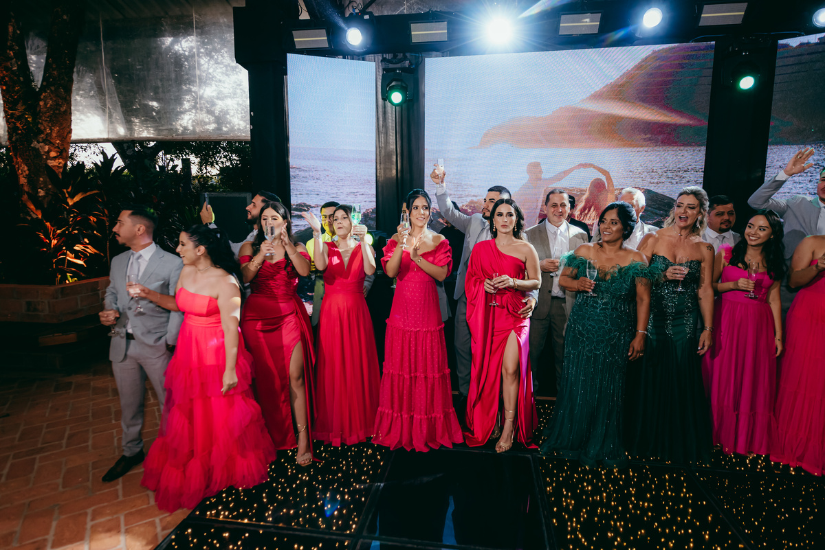 O evento, marcado pela simplicidade sofisticada e pelo romantismo em cada detalhe, ganhou ainda mais magia ao entardecer. O pôr do sol pintou o céu em tons dourados e rosados, trazendo uma atmosfera de sonho e eternizando aquele instante.