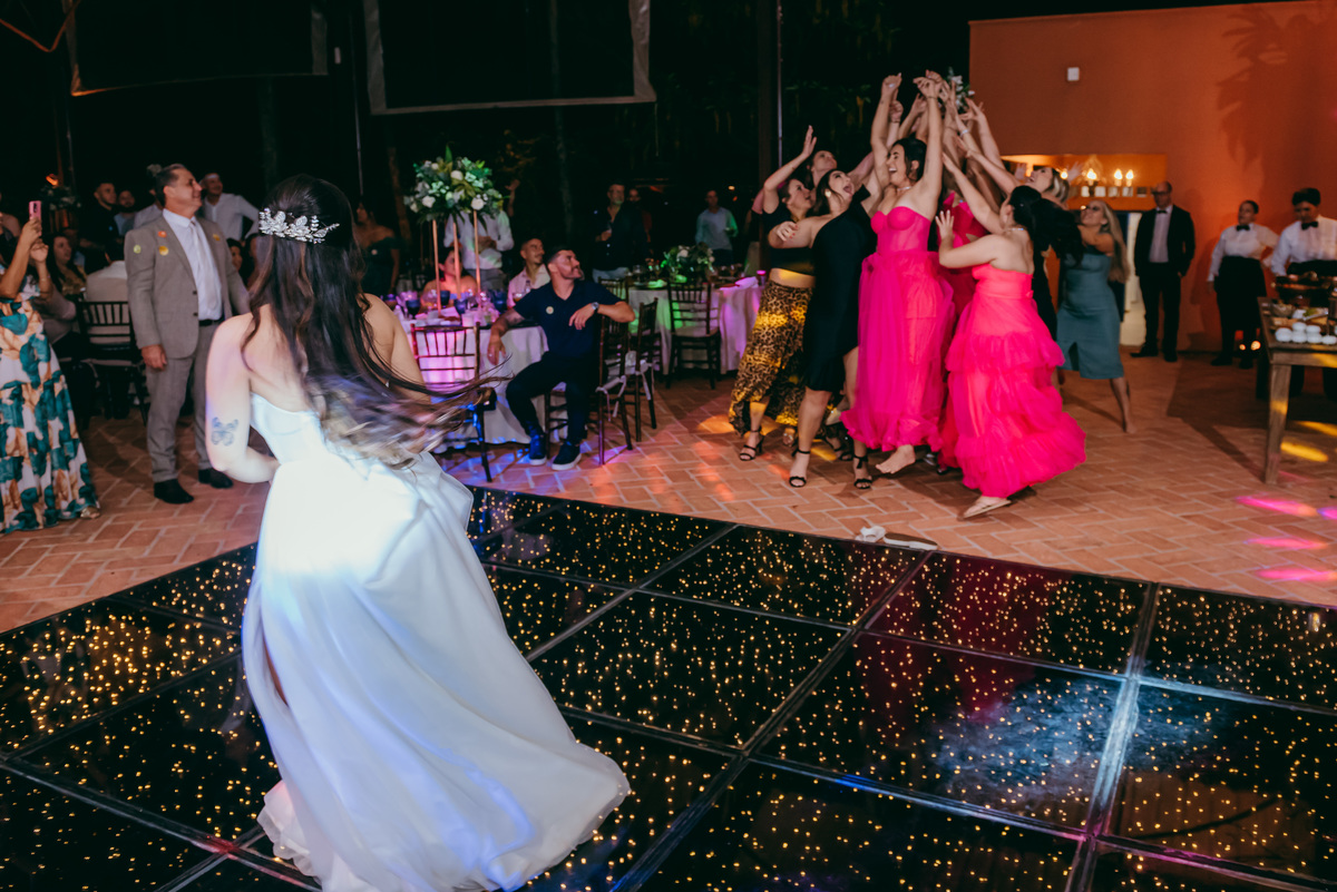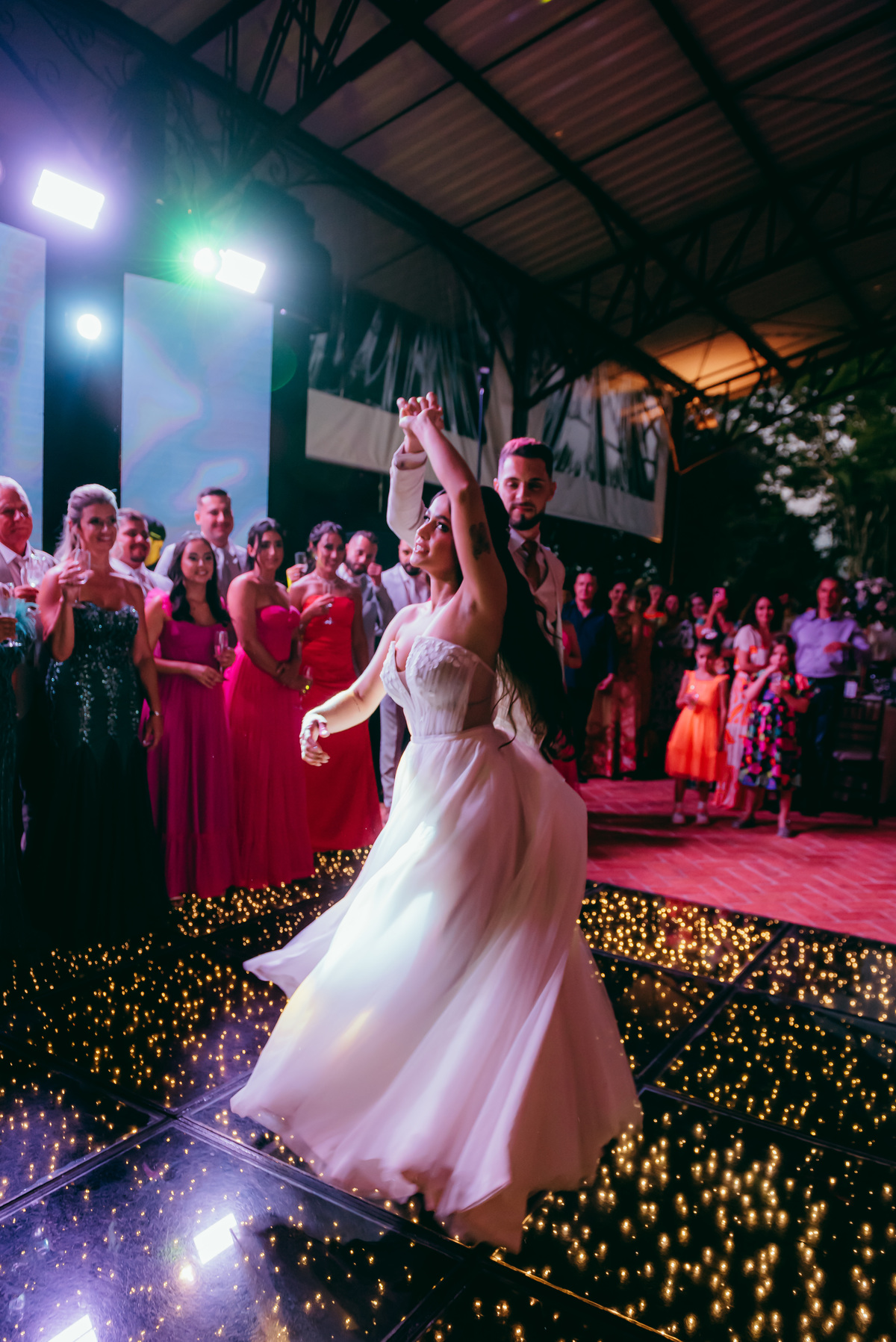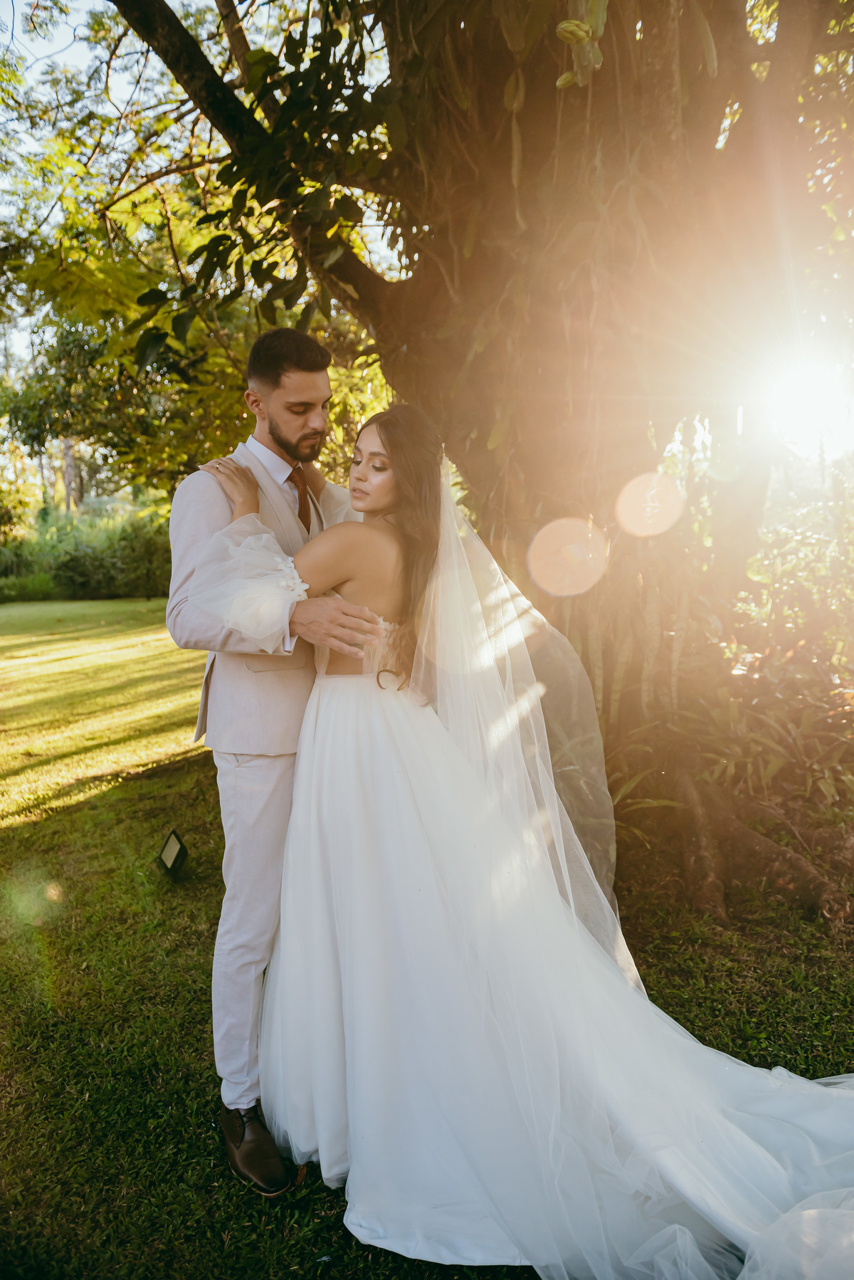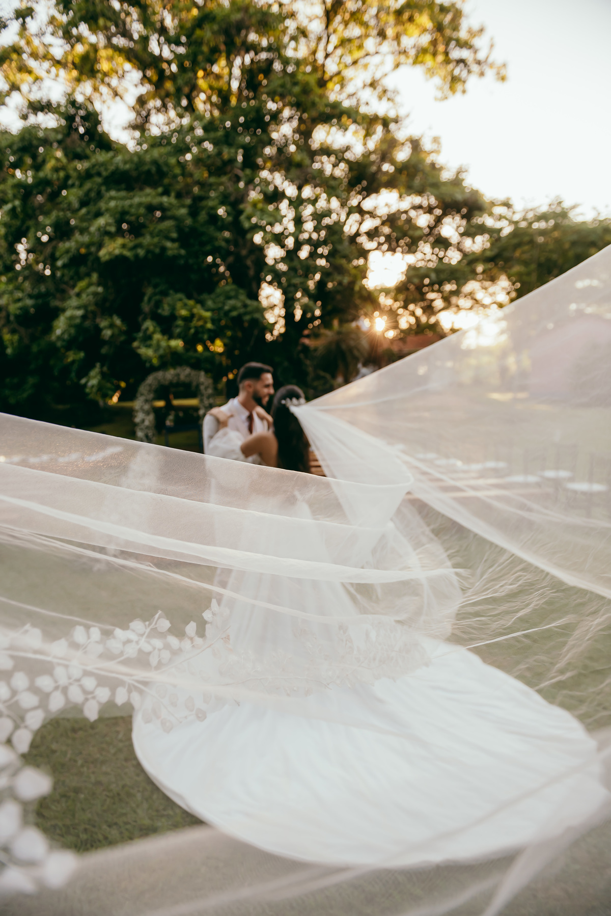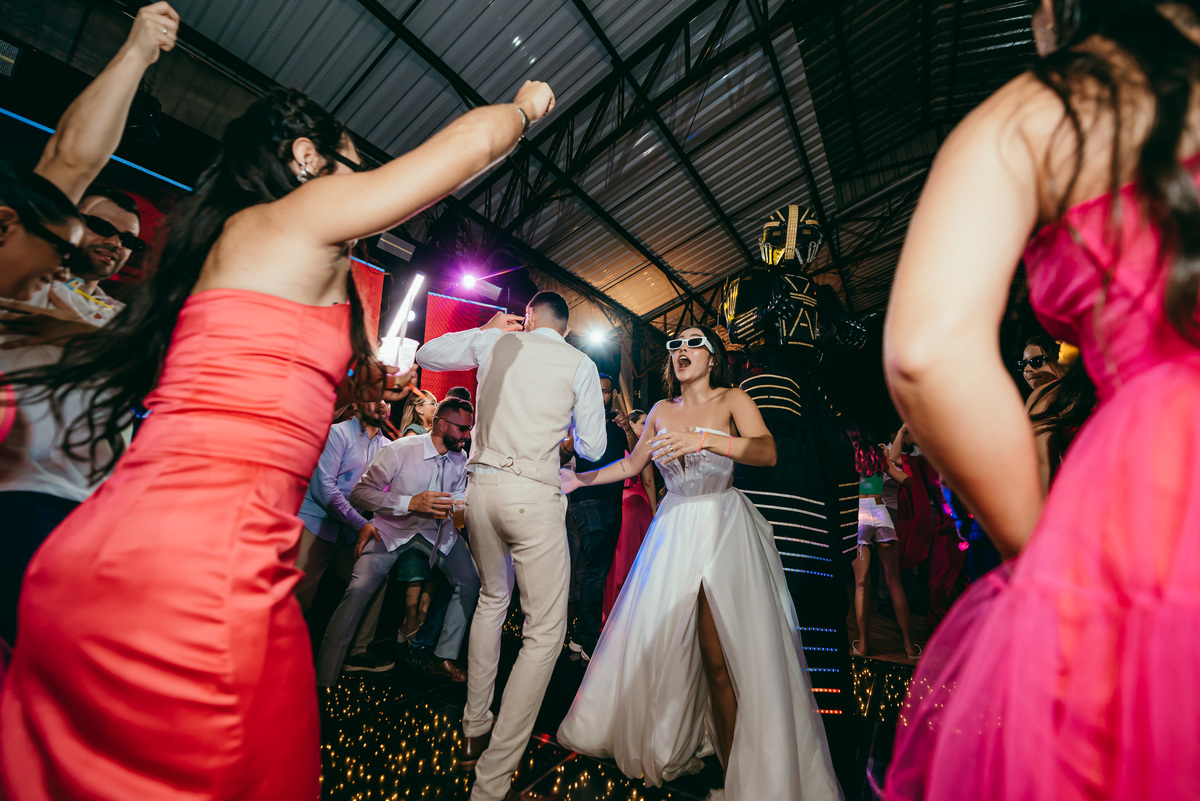 O evento, marcado pela simplicidade sofisticada e pelo romantismo em cada detalhe, ganhou ainda mais magia ao entardecer. O pôr do sol pintou o céu em tons dourados e rosados, trazendo uma atmosfera de sonho e eternizando aquele instante.
