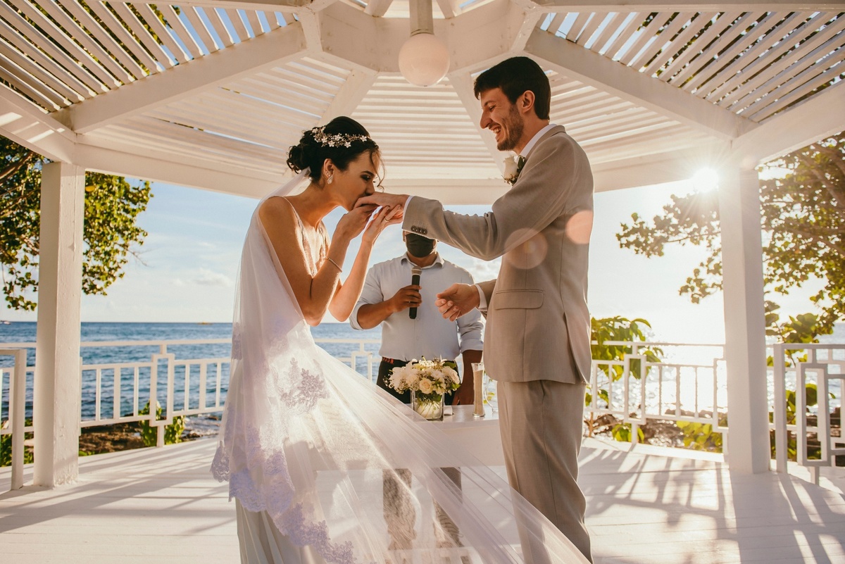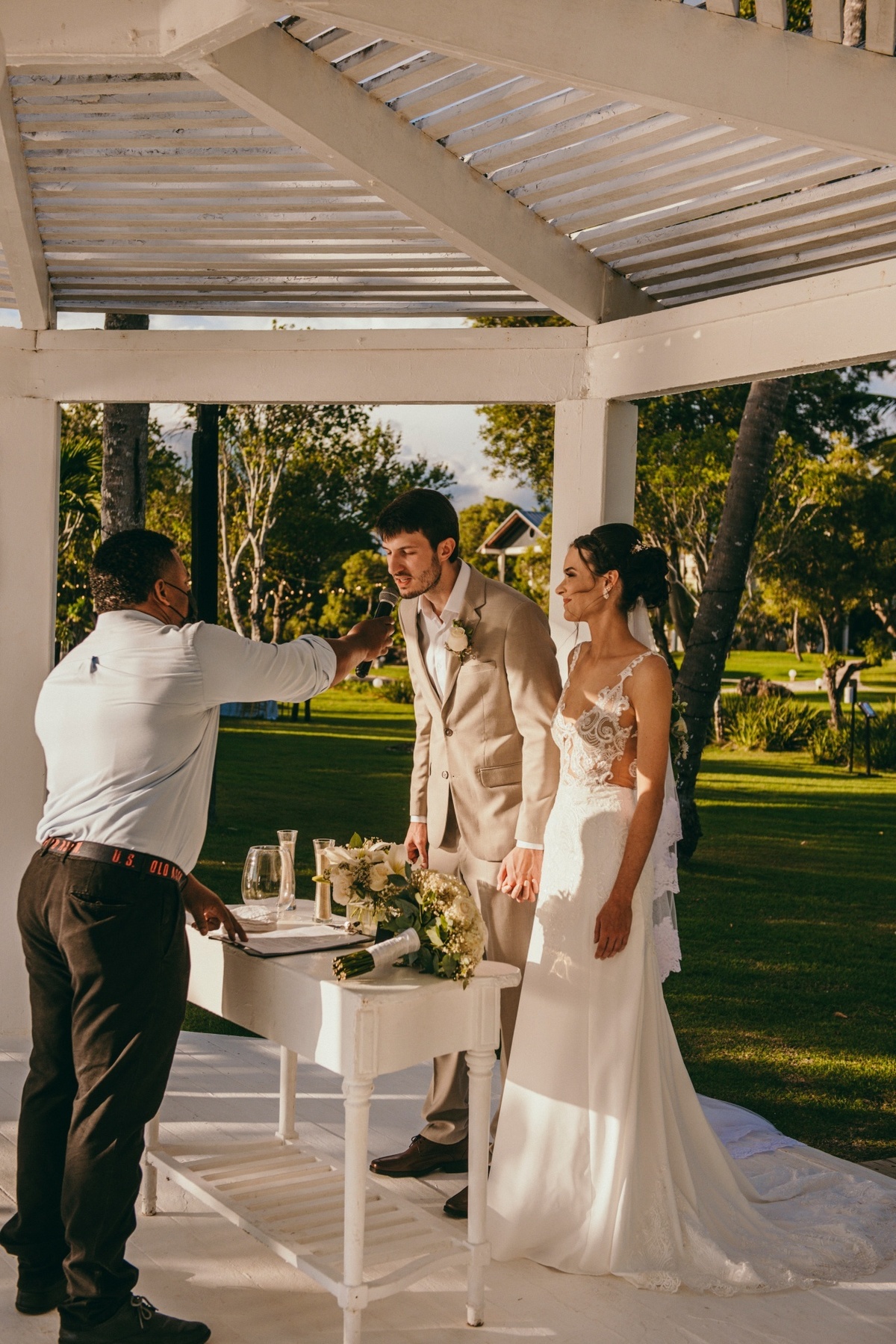 O casamento foi realizado em Punta Cana no Hotel Hilton La Romana em um gazebo maravilhoso e super reservado.